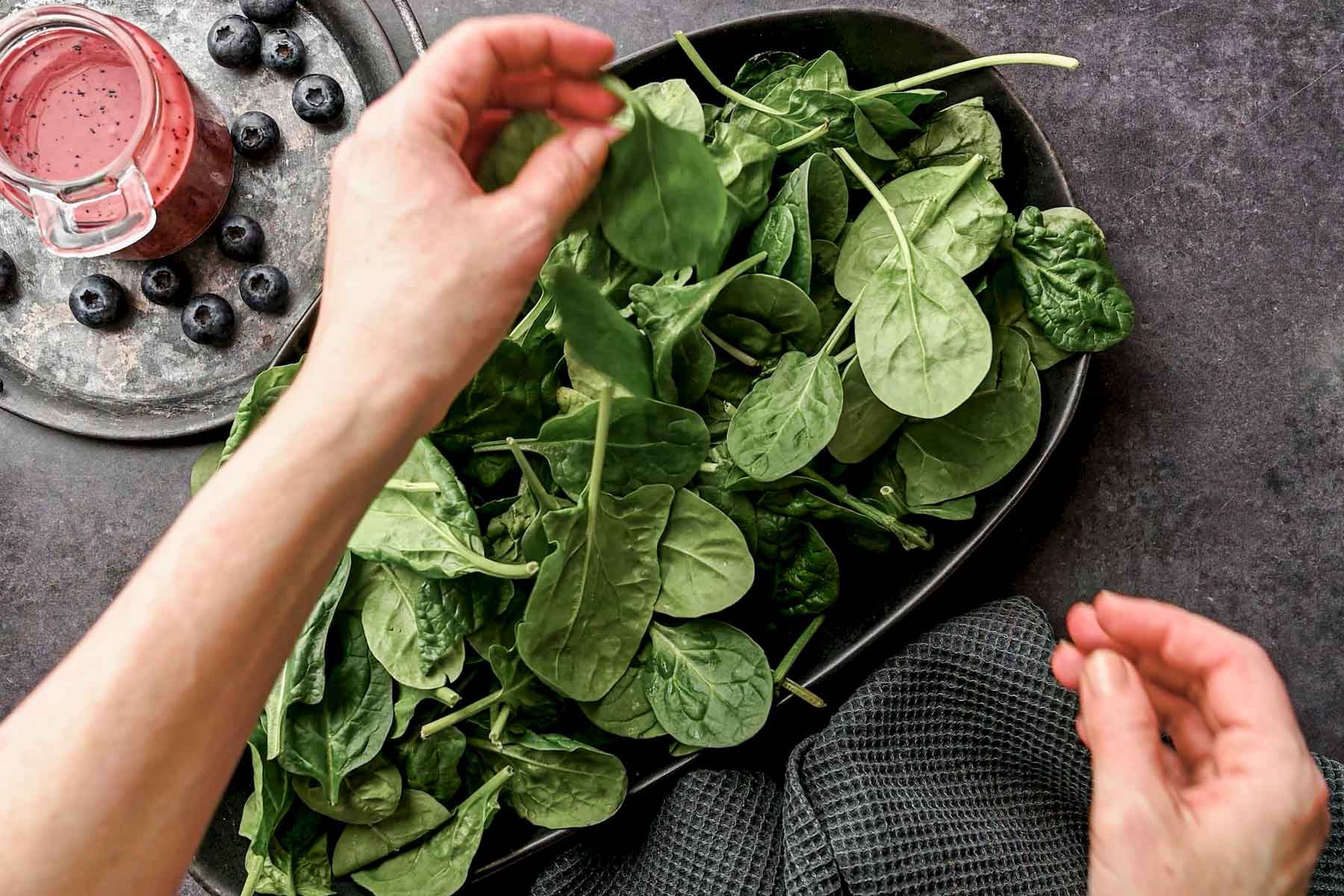 Absolutely! Spinach is mild and easy to pair with pretty much anything, so that sweet burst of flavor from the blueberries is a winning combination.